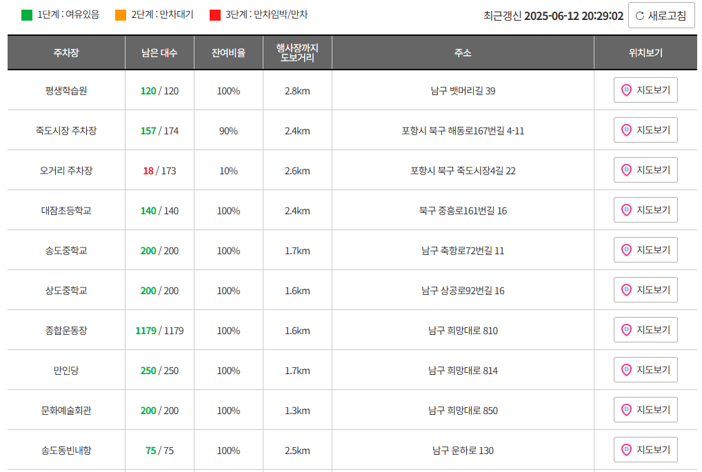 또한 포항국제불빛축제는 실시간 임시주차장의 자리 여부에 대해서 확인이 가능합니다.