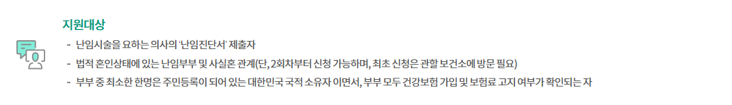 - 지원 대상: 난임 판정 부부